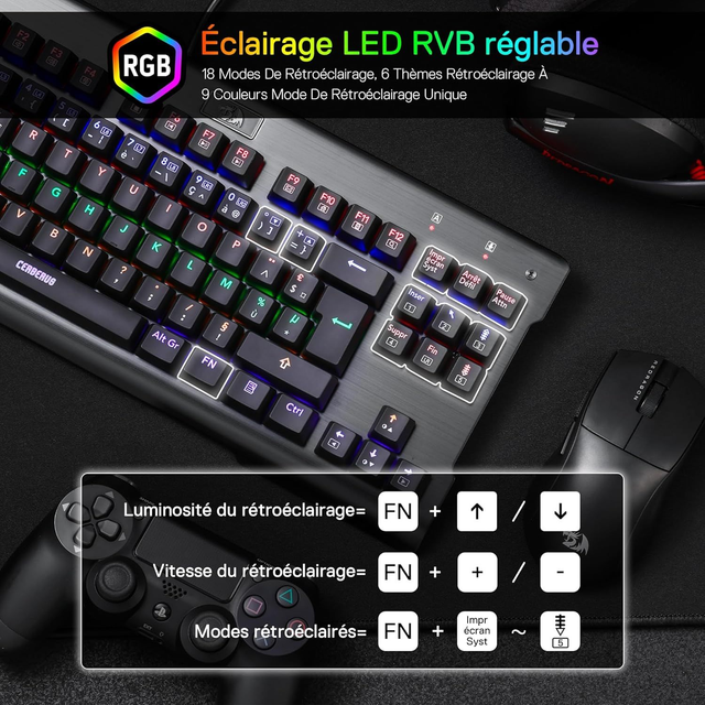 🌈 Éclairage RGB personnalisable avec 18 effets lumineux intégrés.