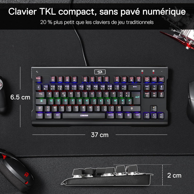 Le Redragon K561 est un clavier mécanique haut de gamme pensé pour le jeu et la productivité. Ses switchs bleus offrent une réactivité exceptionnelle et un retour tactile net, parfait pour les gamers comme pour les dactylographes exigeants.